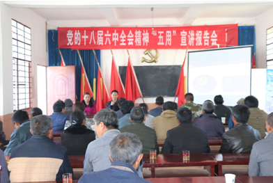 八届六中全会精神带到中山乡贫困村——黄家寨村委会,为贫困村40余位党员群众带来“精神帮扶”。宣讲会由中山乡党委委员、宣传委员尹云仙主持。