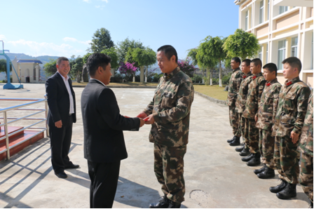 随后,慰问组一行又深入到中山乡边防派出所、检查站,77332部队61分队、62分队,对驻地官兵进行了走访慰问。慰问中,市委常委、市委办主任,中山乡党委书记杨新常代表市委、市政府向长期以来坚守在边境一线岗位上的全体官兵表示节日的问候和祝福。他指出,长期以来,边防派出所和驻地官兵们爱岗敬业,无私奉献,出色地完成了一个又一个任务,为保