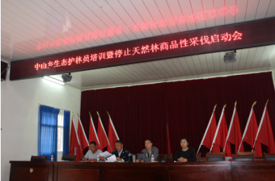 采伐工作,3月21日下午,中山乡组织各村委会主任、村小组组长以及护林员共计110余人在乡政府大会议室召开生态护林员培训会暨停止天然林商品性采伐启动会。乡党委委员、综治政法副书记、副乡长孟三召、乡党委委员、宣传委员尹云仙,乡林业站站长杨世省、副站长段常奎及林业站工作人员参加此次会议。会议由乡党委委员、综治政法副书记、副乡长孟三召主持。