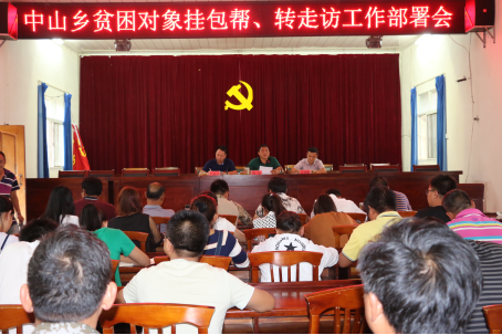 8月25日下午,中山乡在乡政府大会议室召开贫困对象“挂包帮”“转走访”工作部署会议,