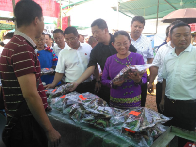 委、市委办主任杨新常等领导在结束2017年芒市第二届乡村文化旅游节开幕式后,莅临中山乡农特产展销区参观指导。