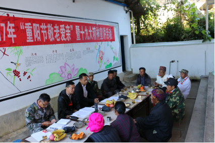 为大力弘扬敬老爱老助老社会风尚,11月11日一早,中山乡芒丙村委会挂村领导、包组干部、村委会负责人按照乡党委的统一安排,精心组织本辖区内退休老干部、农村老党员开展2017年“重阳节敬老爱亲”暨党的十九大精神宣讲活动。