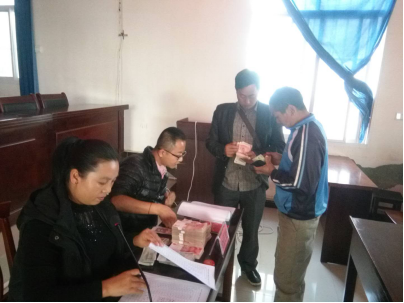 分红时,根据签到顺序依次发放“帮强带弱”分红资金,采取建档立卡贫困户出示身份证,当面点清分红资金,签字认可留底的方式,对到会的40户建档立卡贫困户发放分红资金,共计发放8.72万元。