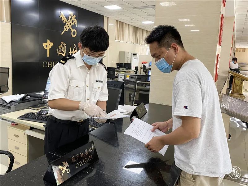 海关关员向企业介绍RCEP原产地规则。窦金锐 摄