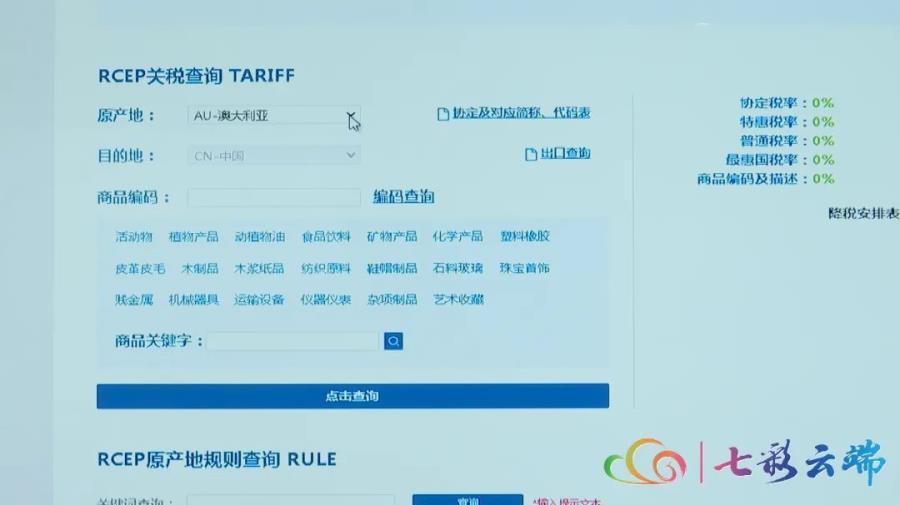 RCEP云南企业服务中心线上平台。图源:七彩云端