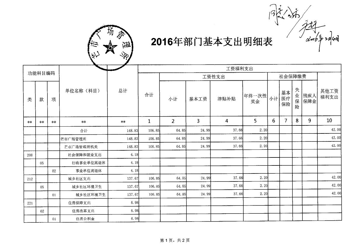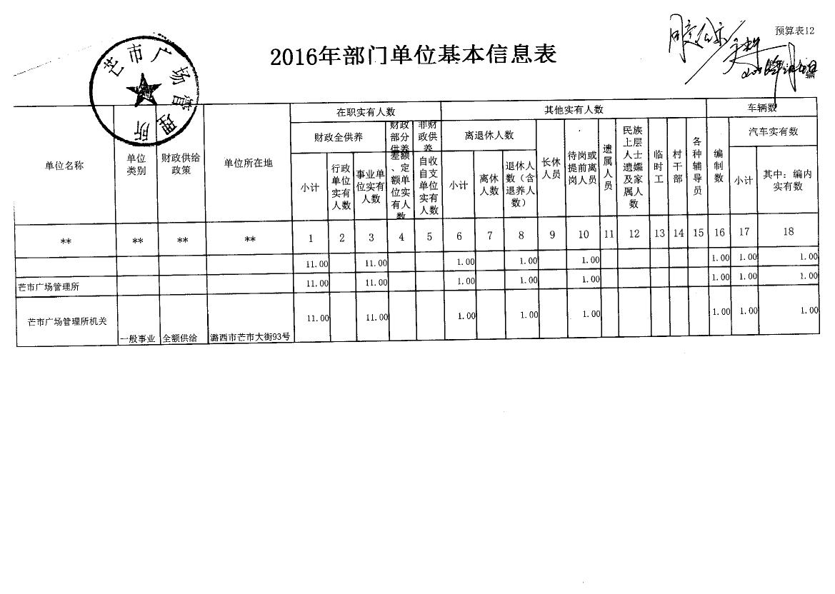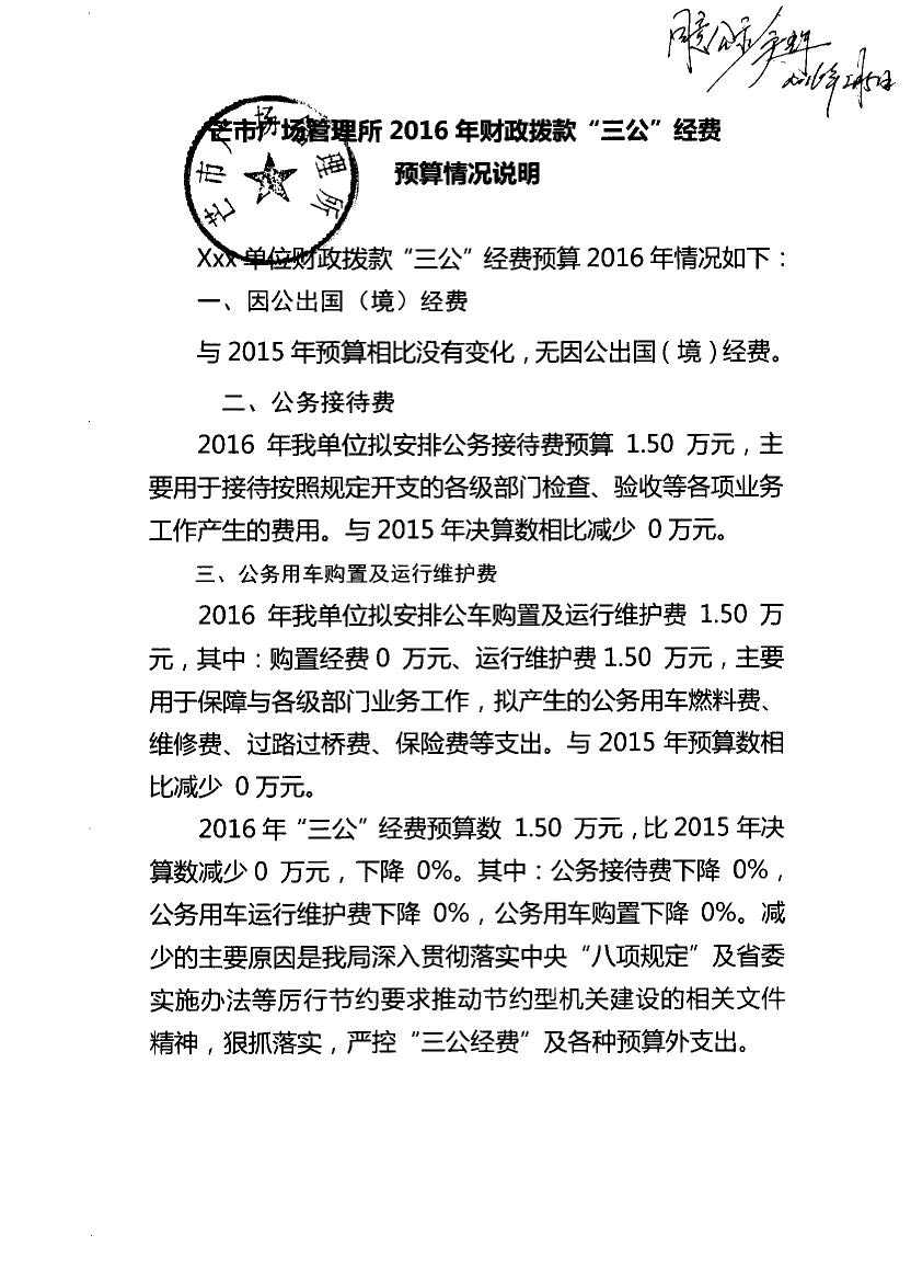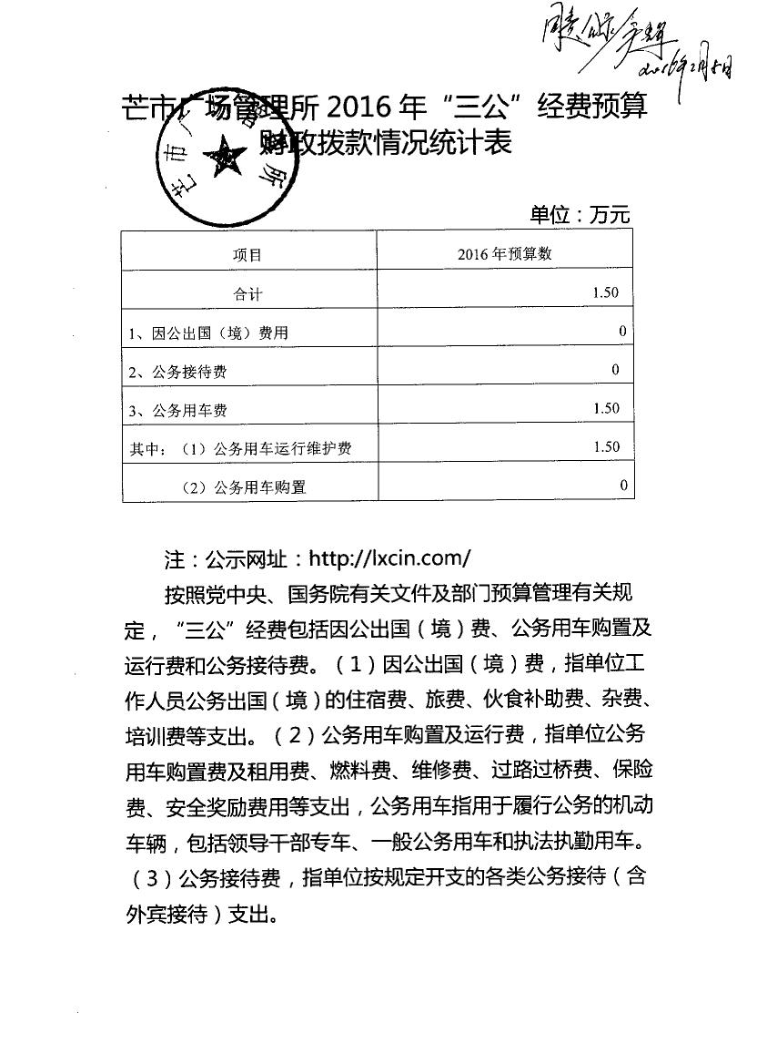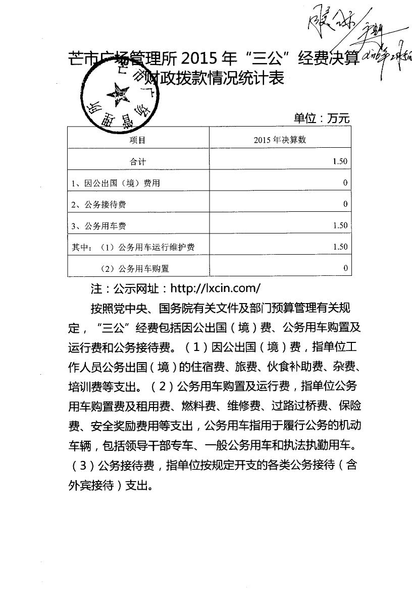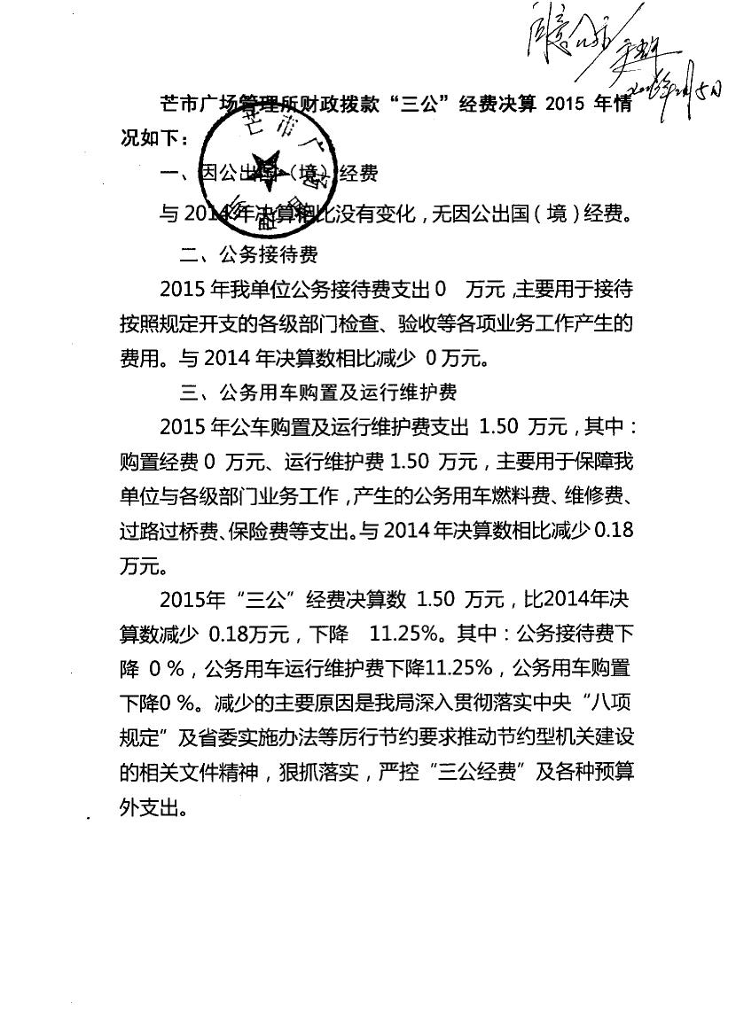 芒市广场管理所2015年“三公”经费决算财政拨款情况统计表