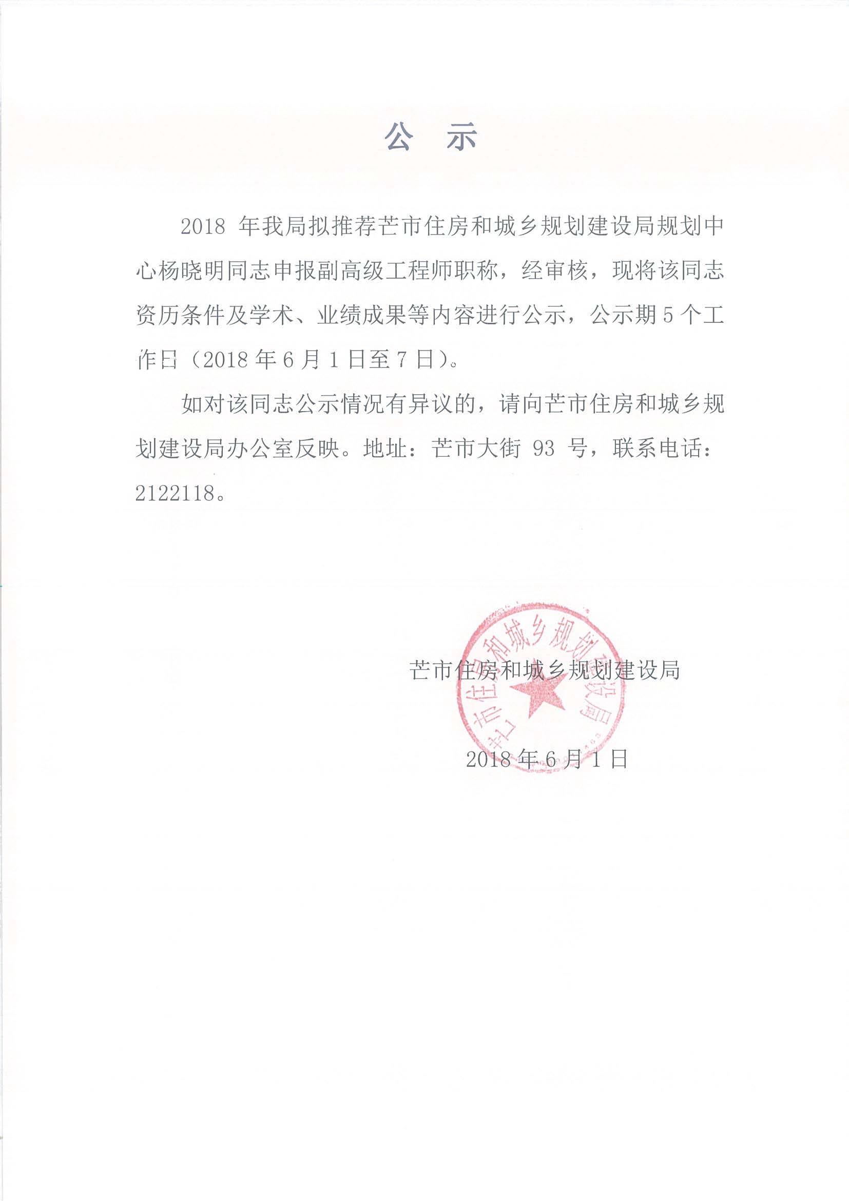 杨晓明申报高级工程师材料公示