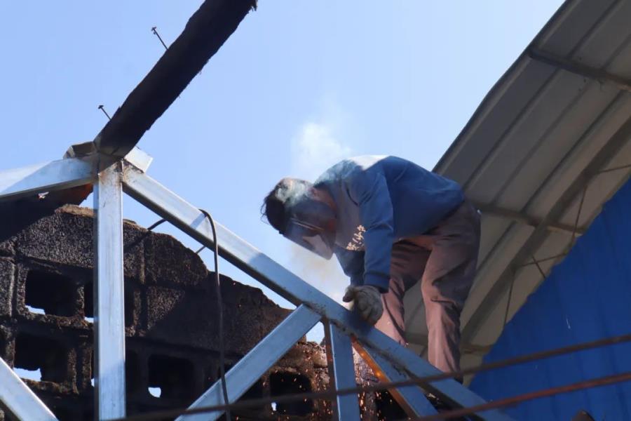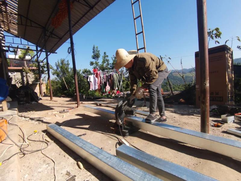 切割钢材、焊接钢架,在芒市西山乡崩强村委会崩强村民小组、帮介村民小组,施工人员正在紧张有序地进行施工,确保在地震中房屋受损的村民能早日住上修缮加固后安全可靠的住房。