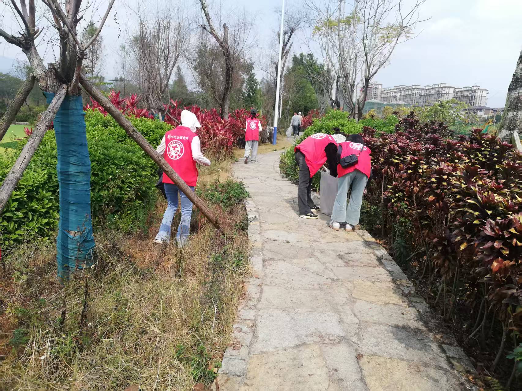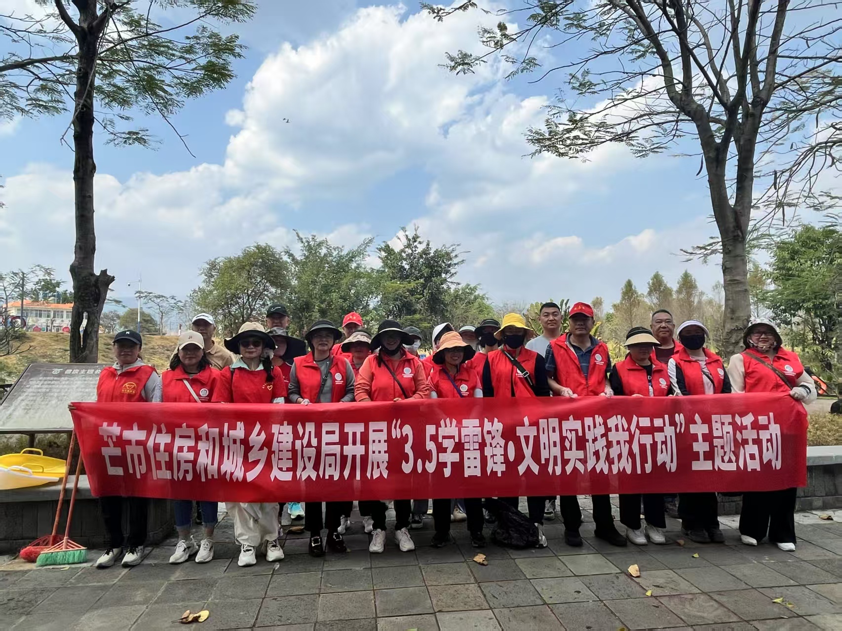 3月4日下午,板过河湿地公园到处分布着星星点点的红色,那是芒市住房和城乡建设局志愿服务队开展“3.5”学雷锋纪念日活动。