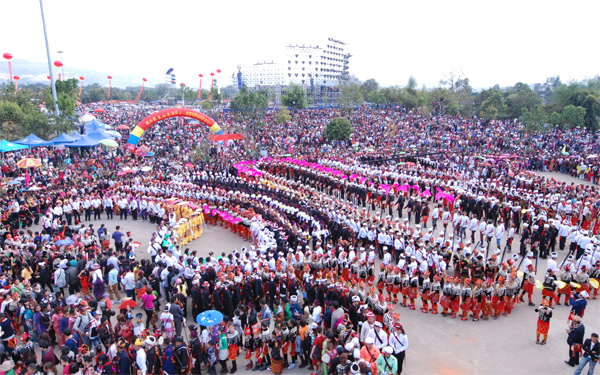 “目脑纵歌”节是景颇族最盛大的民族传统节日,在每年的正月十五举行,为期3─7天,是一个追溯自己民族起源、驱恶扬善、预祝吉祥、庆祝丰收的大型歌舞会,有万人舞会之誉。每到节日,人们从四面八方赶来,围着“目脑柱”且歌且舞,旋律雄浑有力、场面宏大,热闹非凡。